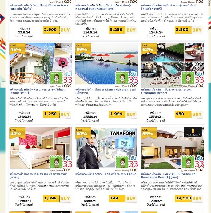 เว็บนี้ขายดีลราคาถูกเหมือนกับ Ensogo ครับ มีพวกโรงแรม สปา ความงาม Gadget ซึ่งส่วนลดที่เห็นก็จะไม่ต่างกันมาก