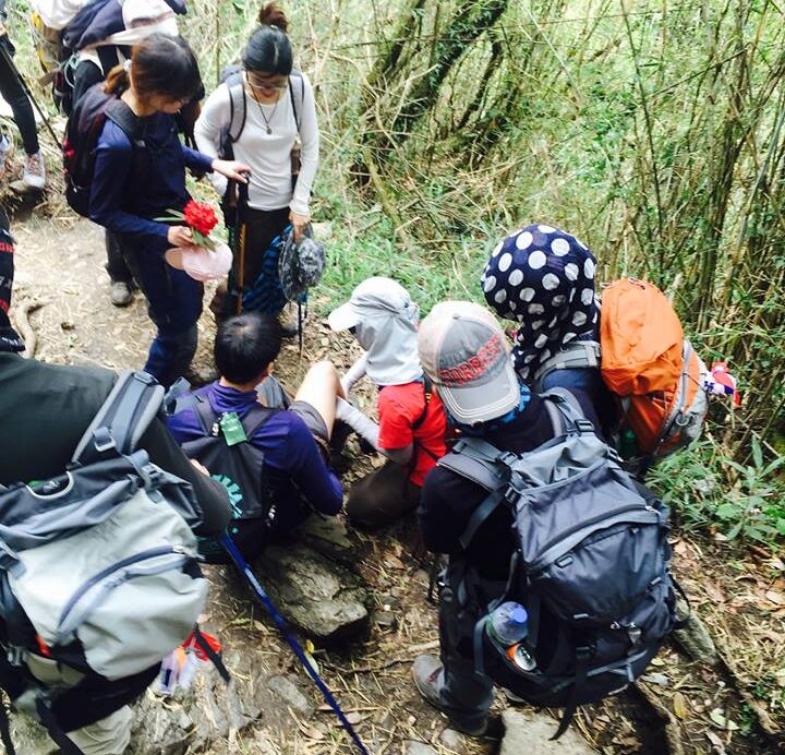 ในภาพ เราเจอกลุ่มคนไทยลื่นแล้วข้อเข่าแพลง หมอปอยเลยช่วยปฐมพยาบาลให้เบื้องต้น เขาบอกว่าเกือบได้เรียก rescue helicopter มารับและไปไม่ถึงยอดเสียแล้ว แต่ก็พอจะฝืนไปต่อได้