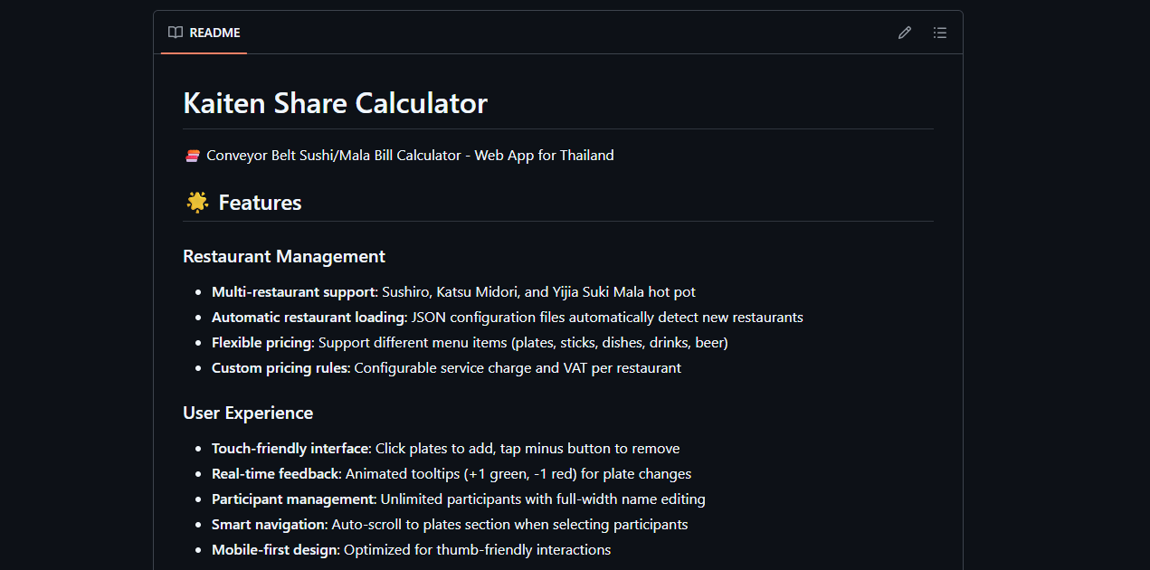 🍣 Kaiten Share Calculator — แอพช่วยคำนวณบิลซูชิสายพาน!